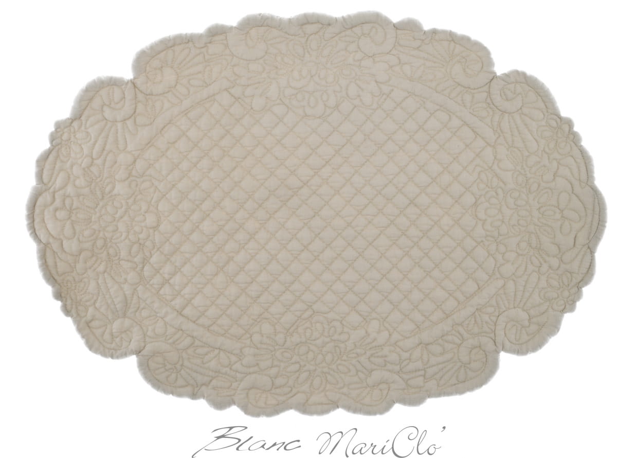 Wprowadź do swojego wnętrza odrobinę włoskiego romantyzmu z podkładką LINDSAY marki Blanc Mariclo. Ta owalna, pikowana podkładka z miękkiej bawełny jest kwintesencją delikatności i elegancji. Staranne przeszycia dodają jej uroku vintage. Użyj jej do ochrony blatu podczas posiłków lub jako bazę pod dekoracje, by stworzyć niezapomniane aranżacje stołu.